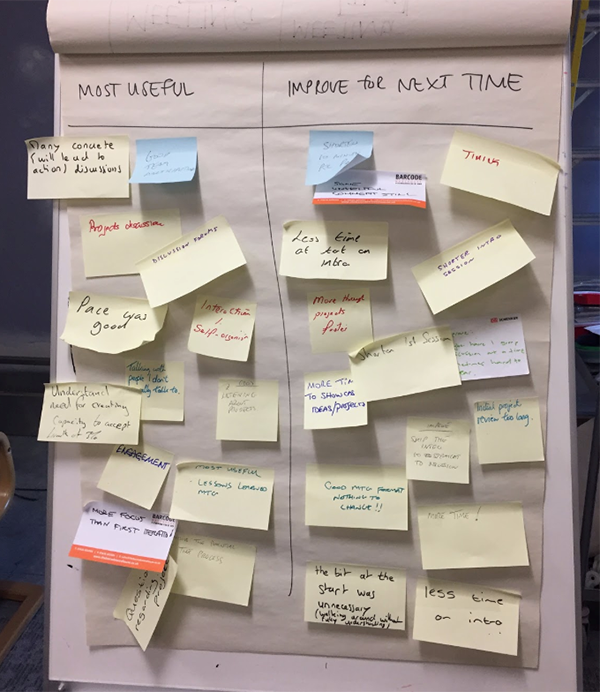 Consider how you might truly embed the outputs you’ve worked so hard to create back into the workflow, for example by giving people 10 minutes at the end of a meeting to stay in the room and add information, to dos and calendar entries or even to have offline conversations with people before everyone leaves the room.