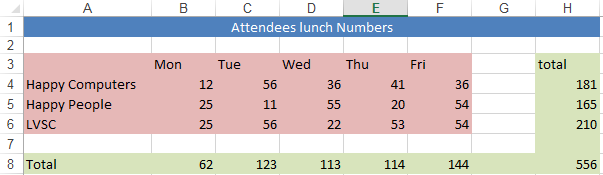 If we consider the table of data below that we have three rows of data organised into five columns. This data will not make a good pie chart!