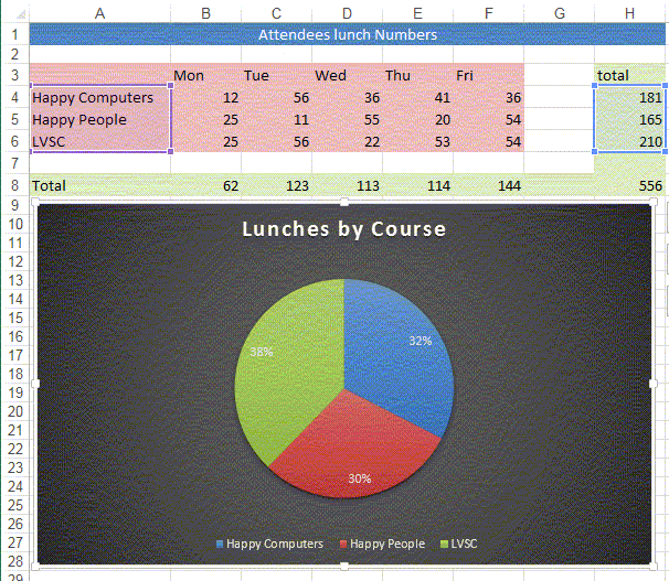 Totals, or the rows or columns, give data that will be more appropriate to a good old Pie chart!