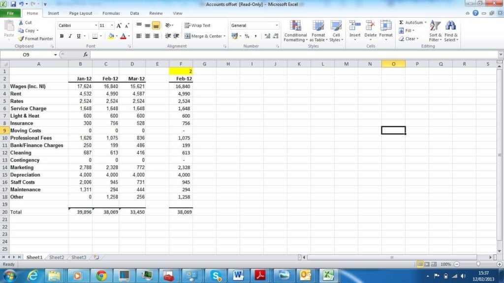 OFFSET is a neat little function which allows you to say, from any cell go 3 to the right and 4 down – or, better, use cell references. So to extract this month’s accounts:
